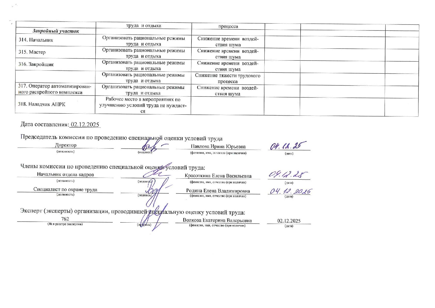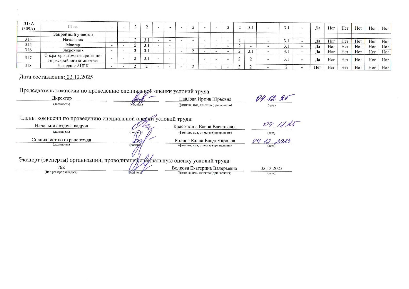 Сводная ведомость результатов проведения специальной оценки условий труда 04.12.2025
