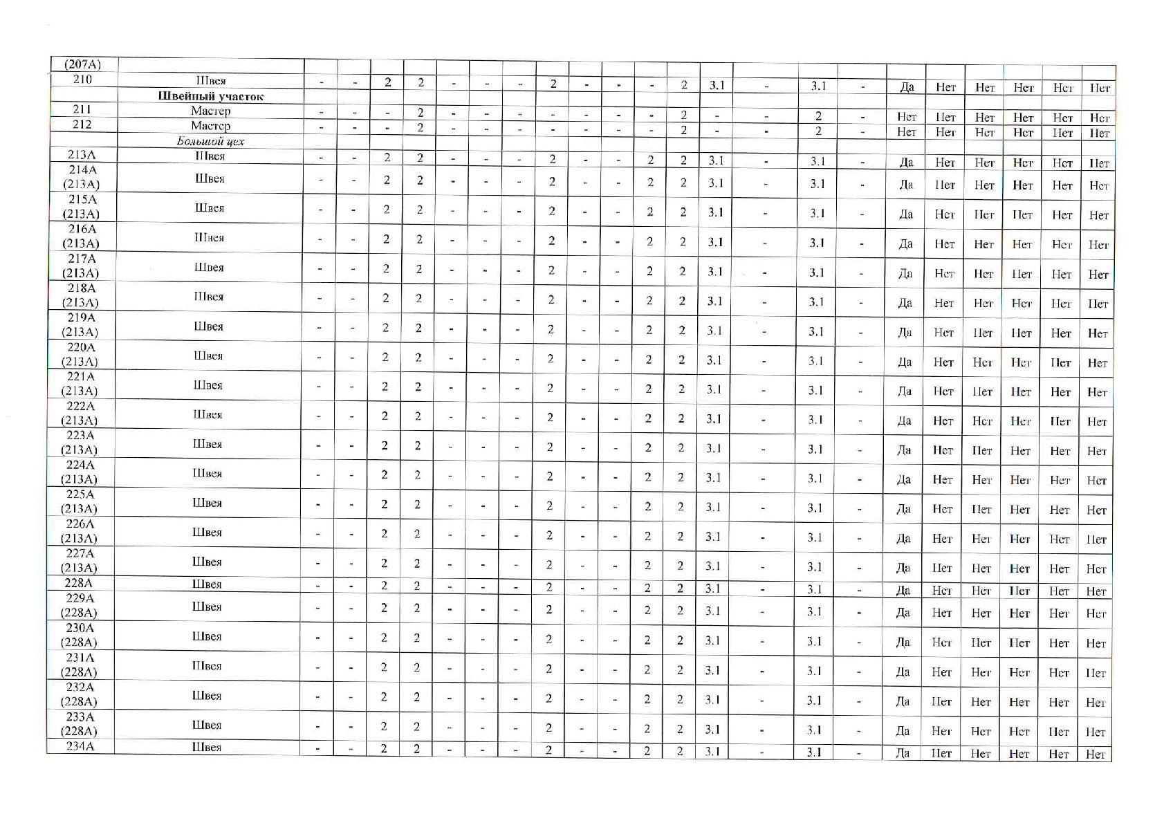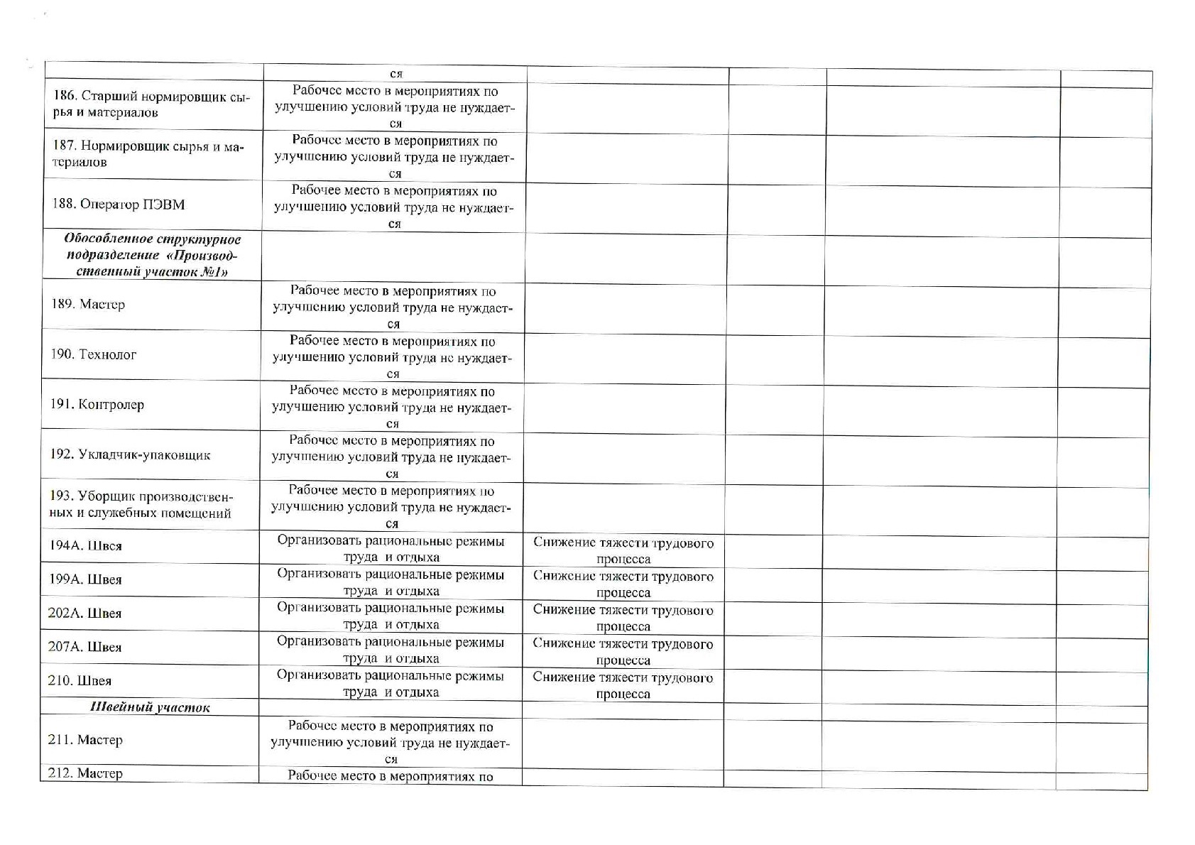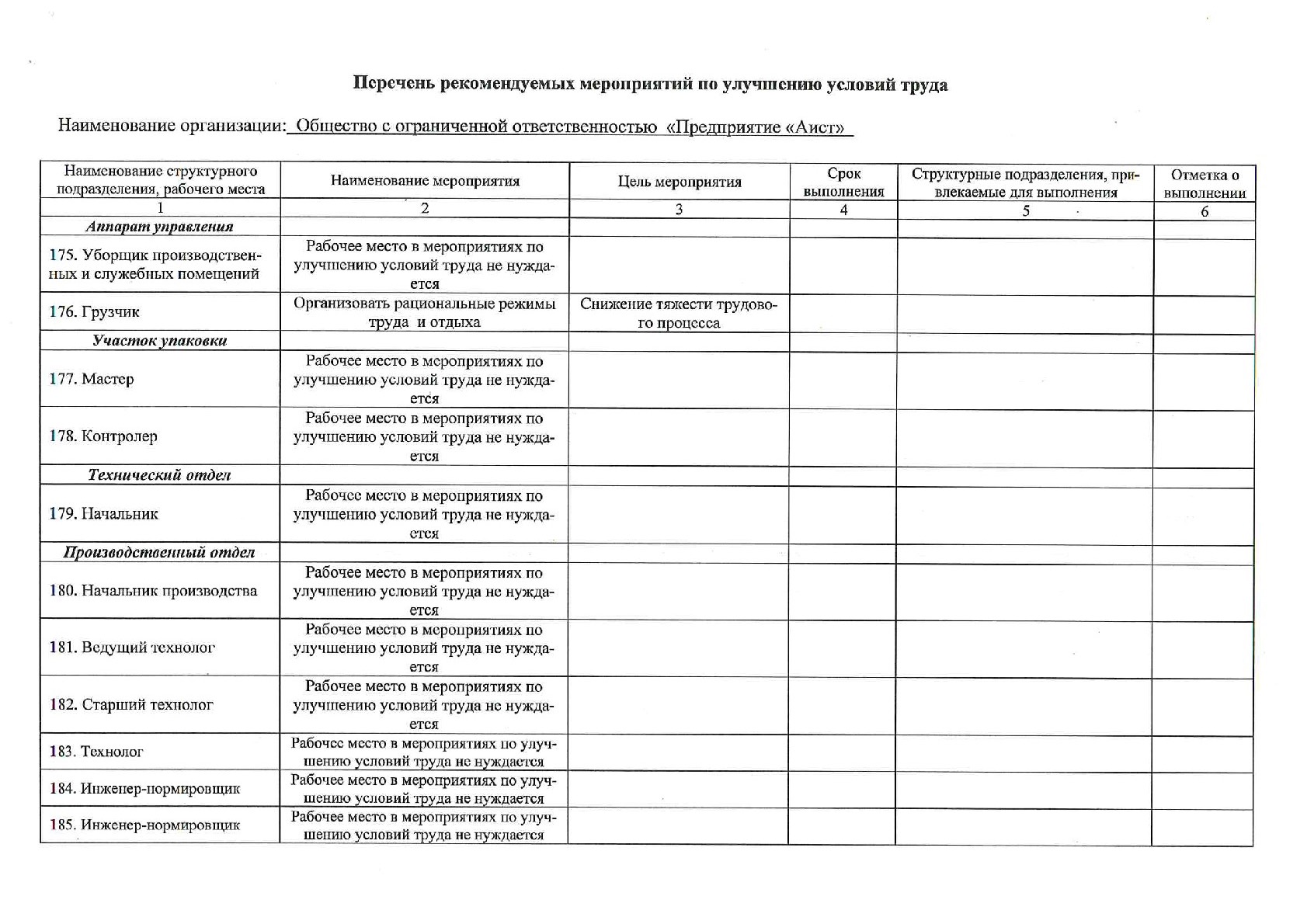 Сводная ведомость результатов проведения специальной оценки условий труда ООО «Предприятие «Аист»